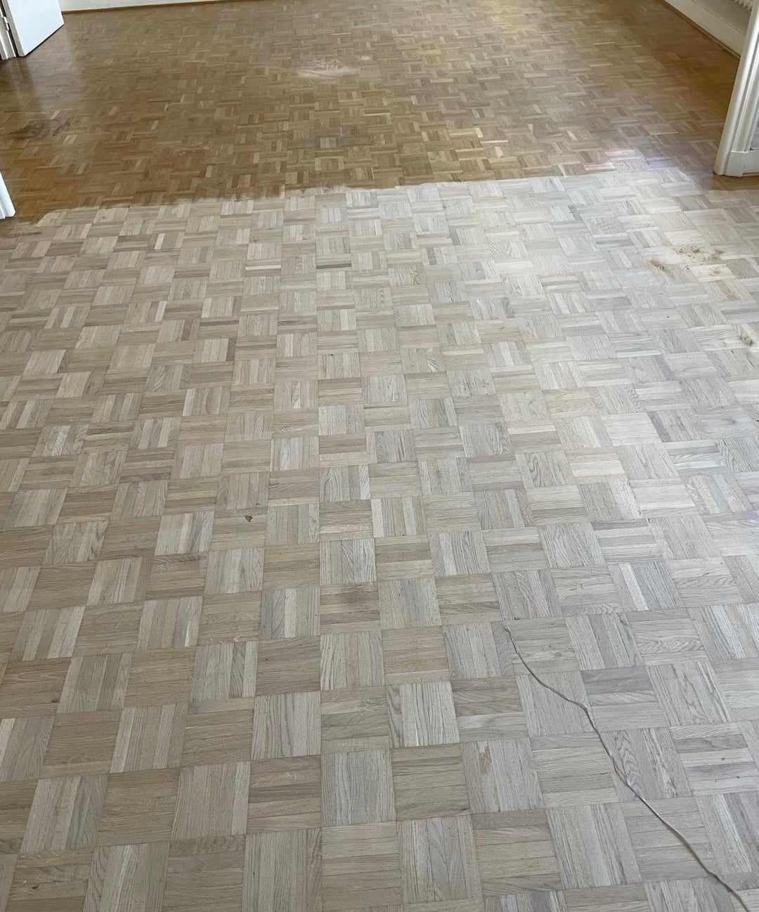 Avant notre intervention, le parquet montrait des signes d’usure, avec des zones ternes et des rayures visibles. Nous avons procédé à un ponçage soigneux pour restaurer la surface du bois en éliminant les imperfections. Ensuite, une vitrification de haute qualité a été appliquée, redonnant au parquet son éclat naturel tout en le protégeant contre l’usure future. Après notre passage, le parquet a retrouvé sa beauté d’origine, apportant une nouvelle vie à l’appartement.